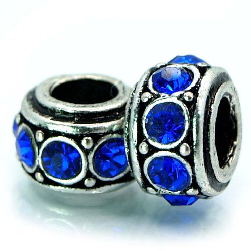 Save on (Free Shipping!) 2 Two of Birthstone September Sapphire Blue Rhinestone Rhinestone spacer Bead Pandora Troll Chamilia Biagi Bead Compatible by Pro Jewelry